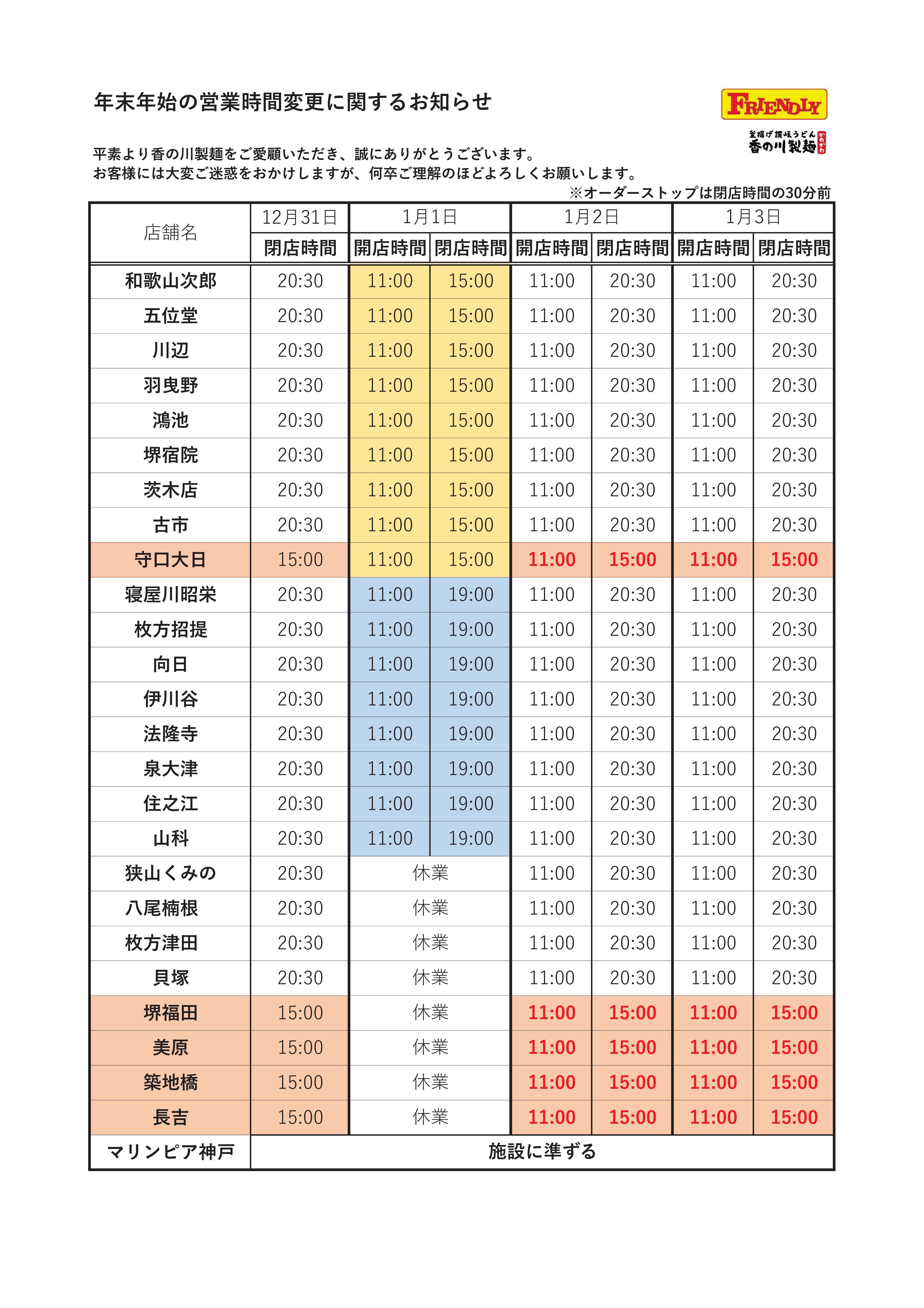 営業時間変更に関するお知らせを下記の通り掲載させていただきます。
