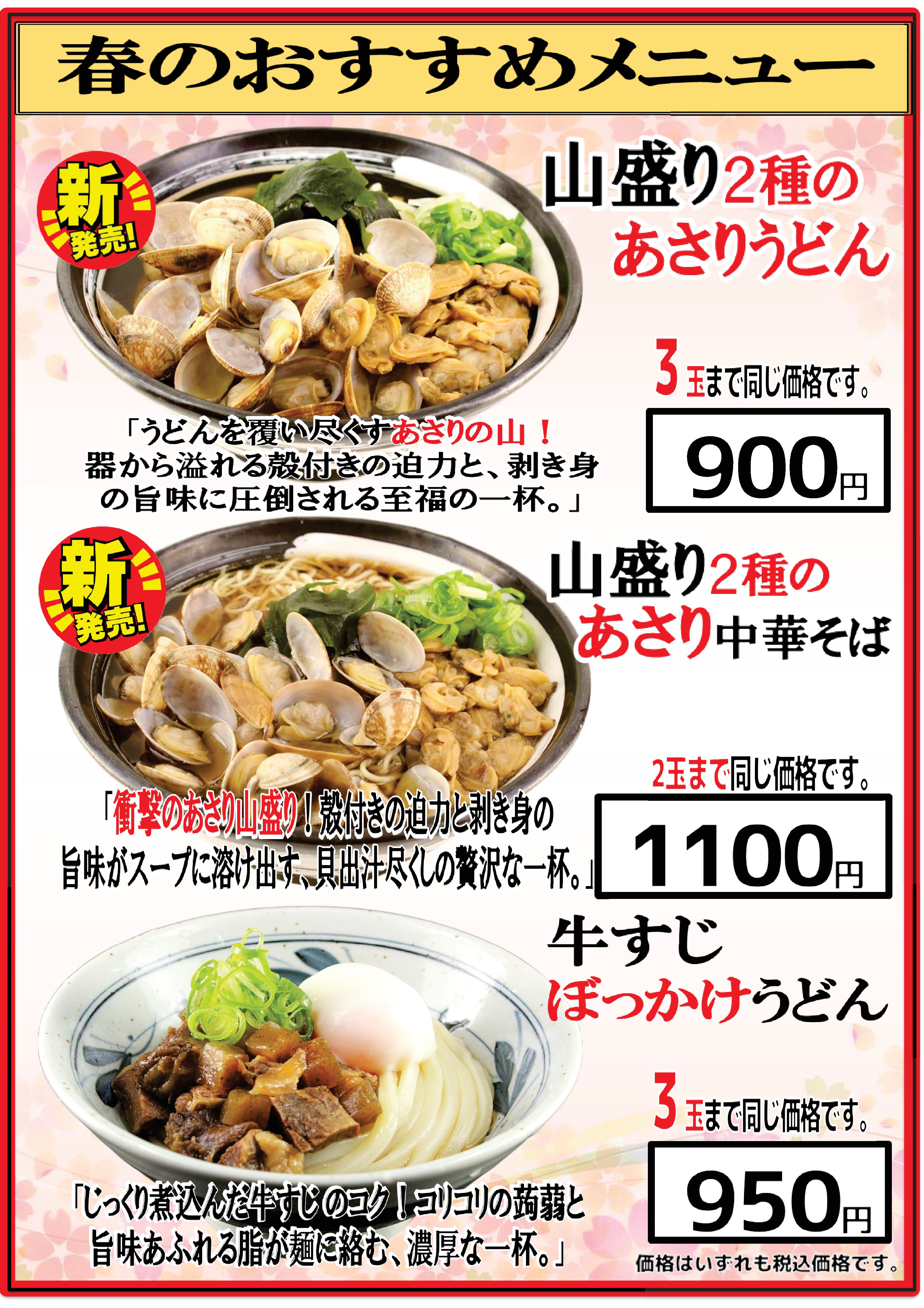 香の川製麺で、春のおすすめメニューを販売致します。 是非ご来店頂き、香の川自慢のおすすめメニューをご賞味ください!
